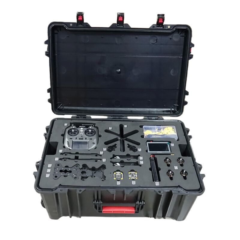 Το κουτί προσαρμογής και εκπαίδευσης UAV διαθέτει πλήρως ενοποιημένο σχεδιασμό με τρεις πλήρεις λύσεις συναρμολόγησης συστήματος,λειτουργεί ως βασική εκπαιδευτική πλατφόρμα για τους μαθητές να εξελιχθούν από "πιλότους" σε "τεχνικούς μηχανικούς"Ο εξοπλισμός αυτός καλύπτει ολόκληρη την πρακτική ροή εργασίας από την συναρμολόγηση των εξαρτημάτων μέχρι τη λειτουργική ρύθμιση, με έμφαση στις δεξιότητες μηχανικής σύνδεσης όπως η συναρμολόγηση του πλαισίου και η στερέωση του κινητήρα.Παρέχει επίσης κατάρτιση σχετικά με τη λογική ηλεκτρικής σύνδεσης για ενότητες, συμπεριλαμβανομένων των πινάκων ηλεκτρικής ενέργειας, ηλεκτρονικούς ρυθμιστές, δέκτες και GPS, καθώς και τεχνικές συστήματος όπως βαθμονόμηση υλικού, διαμόρφωση καναλιού και ρύθμιση παραμέτρων PID.